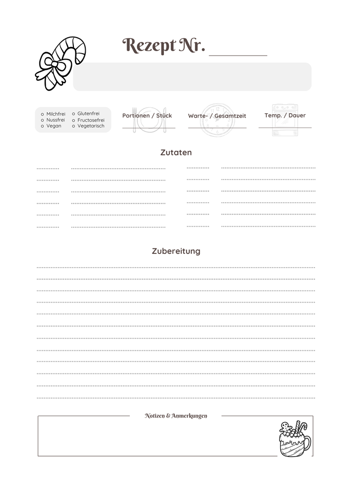 Verleihe deiner Weihnachtsküche eine persönliche Note und kreiere deine ganz eigene Sammlung festlicher Rezepte. Lade dir jetzt deine Vorlage herunter und lass deiner Kreativität freien Lauf!