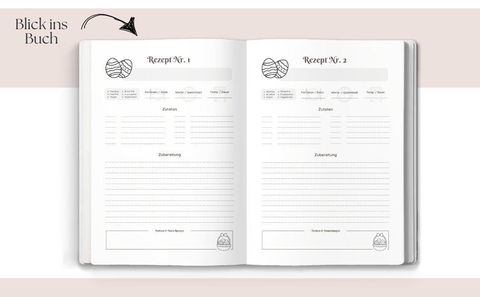 Zusätzlich gibt es Raum für deine persönlichen Notizen und liebevollen Anpassungen, damit jedes Gericht perfekt auf dein Osterfest abgestimmt ist.